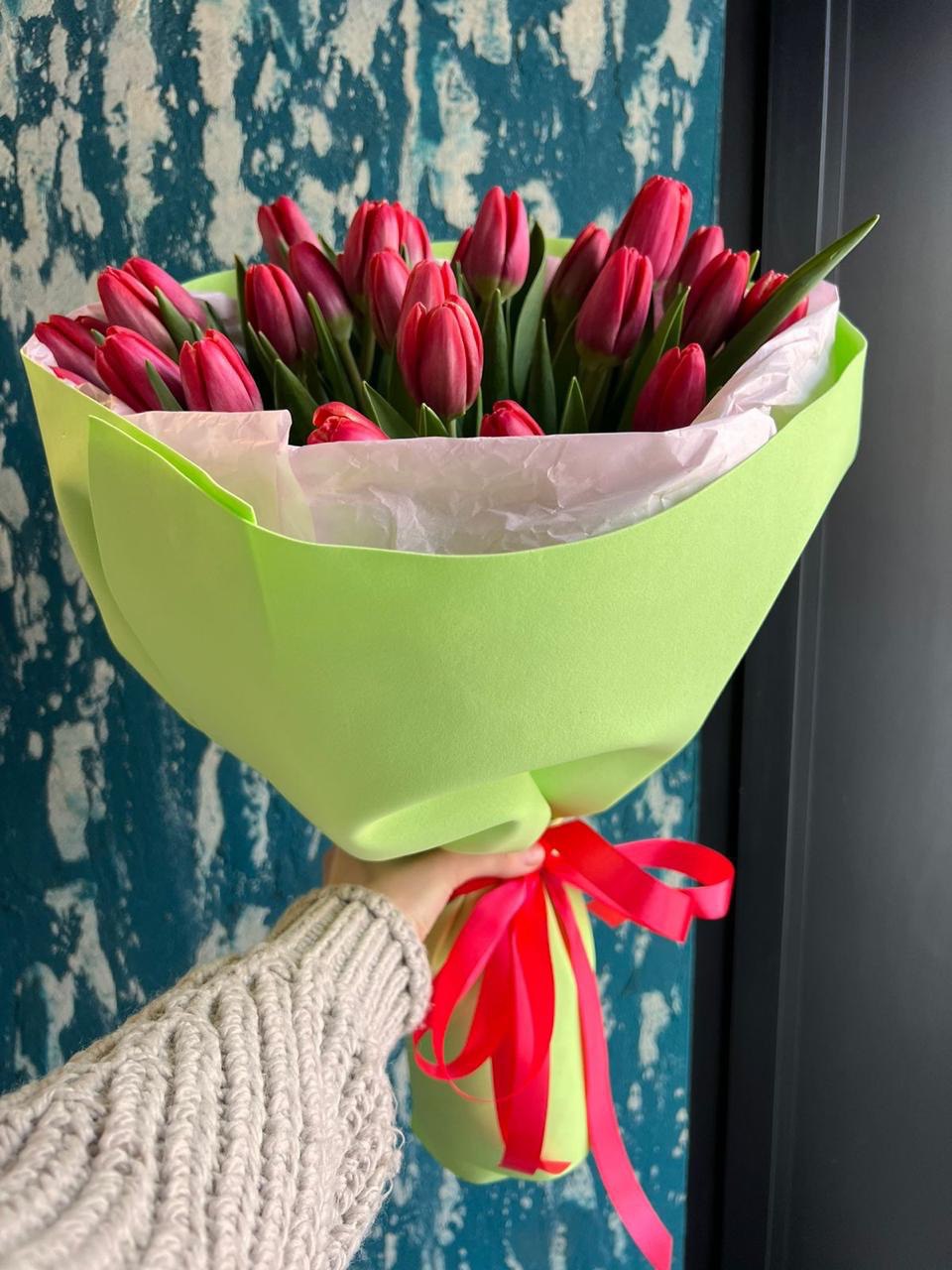 Каждый тюльпан в букете имеет идеальную форму и насыщенный цвет, что делает его привлекательным и запоминающимся. Оформленный в стильную упаковку, букет из красных тюльпанов станет настоящим произведением искусства, которое порадует глаз и сердце. Подарите себе или своим близким этот великолепный букет и создайте незабываемую атмосферу.