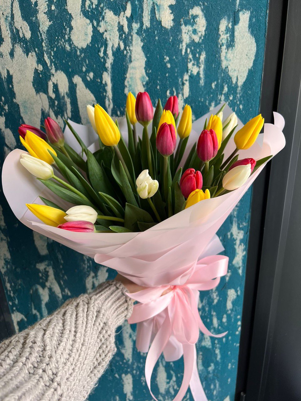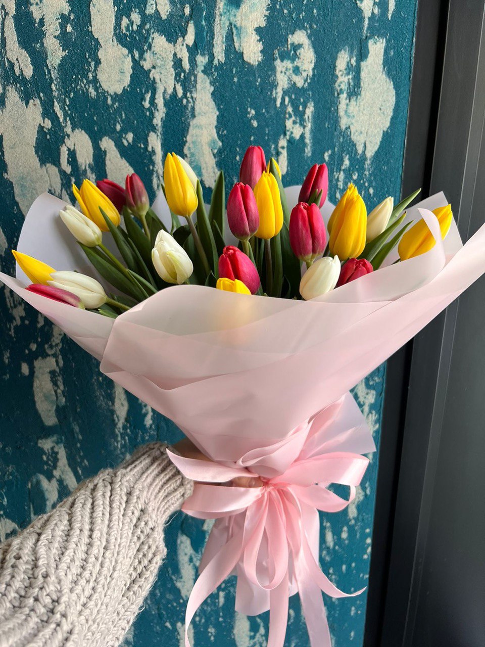 Каждый тюльпан отобран вручную, что гарантирует высокое качество и свежесть букета. Цветы аккуратно упакованы, что обеспечивает их сохранность во время транспортировки. Букет тюльпаны микс идеально подходит для подарка на день рождения, юбилей, свадьбу или просто как знак внимания для близких. Он станет прекрасным дополнением к любому торжеству и создаст атмосферу уюта и тепла. Заказывая этот букет, вы дарите не только цветы, но и положительные эмоции, которые останутся в памяти надолго. Выберите букет тюльпанов микс и сделайте ваш подарок незабываемым.